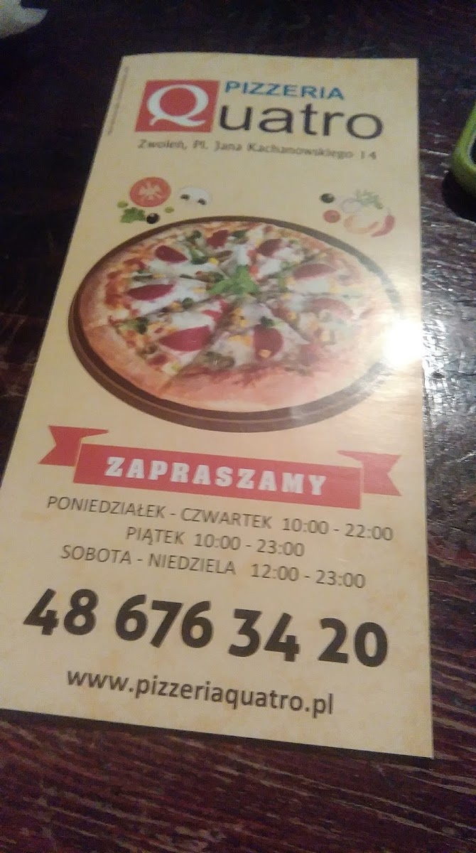 Welcome to Pizzeria Quatro, a gem nestled in Zwoleń, Poland. Known for its delicious pizzas, this pizzeria captivates with a harmonious blend of taste and quality. Diners rave about the perfect crust—crispy on the outside yet soft and airy within. The ingredients shine with freshness; from savory ham and mushrooms to spicy peppers and crispy bacon, each bite is a delight.